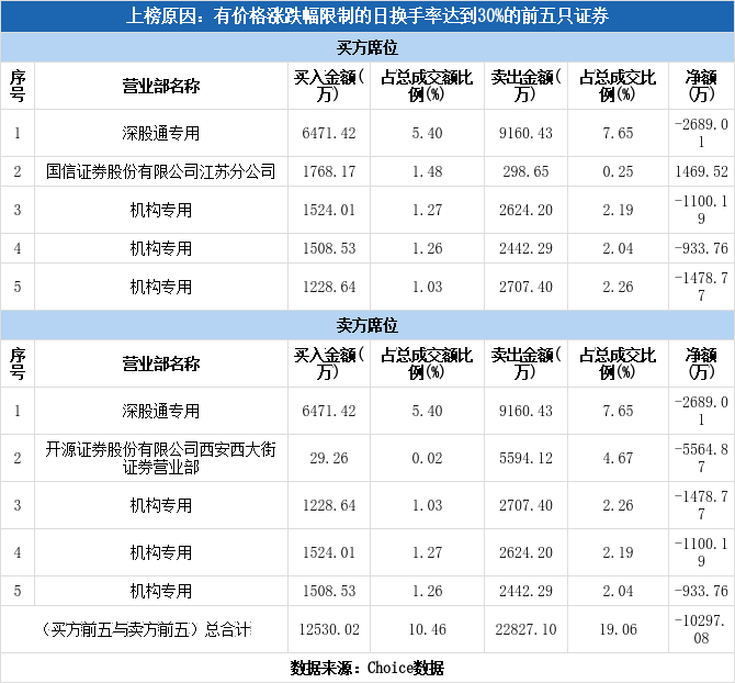 深交所2026年1月6日交易公开信息显示,云汉芯城因属于有价格涨跌幅限制的日换手率达到30%的前五只证券而登上龙虎榜。云汉芯城当日报收184.30元,涨跌幅为0.22%,换手率45.76%,振幅8.55%,成交额11.98亿元。