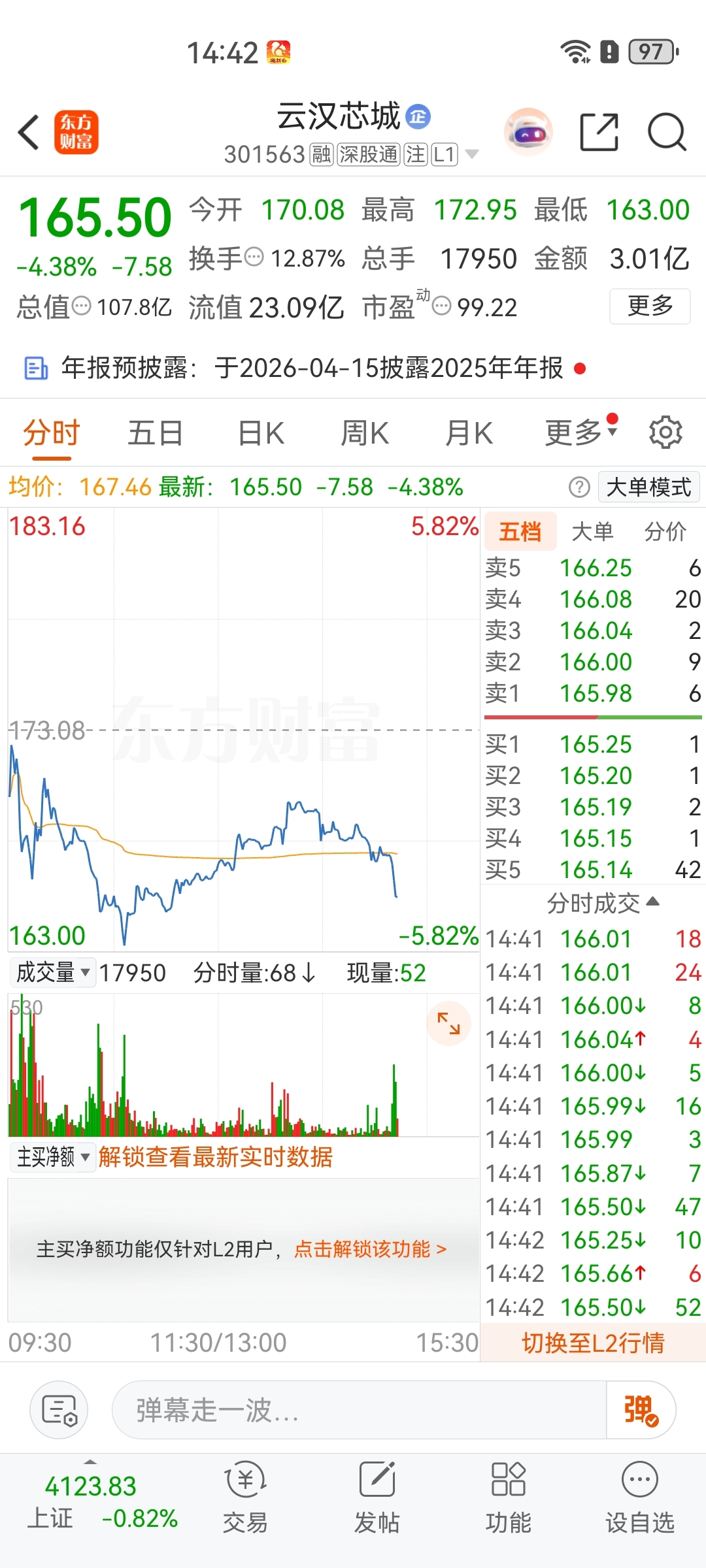 $云汉芯城(SZ301563)$ 莫名其妙的跳水