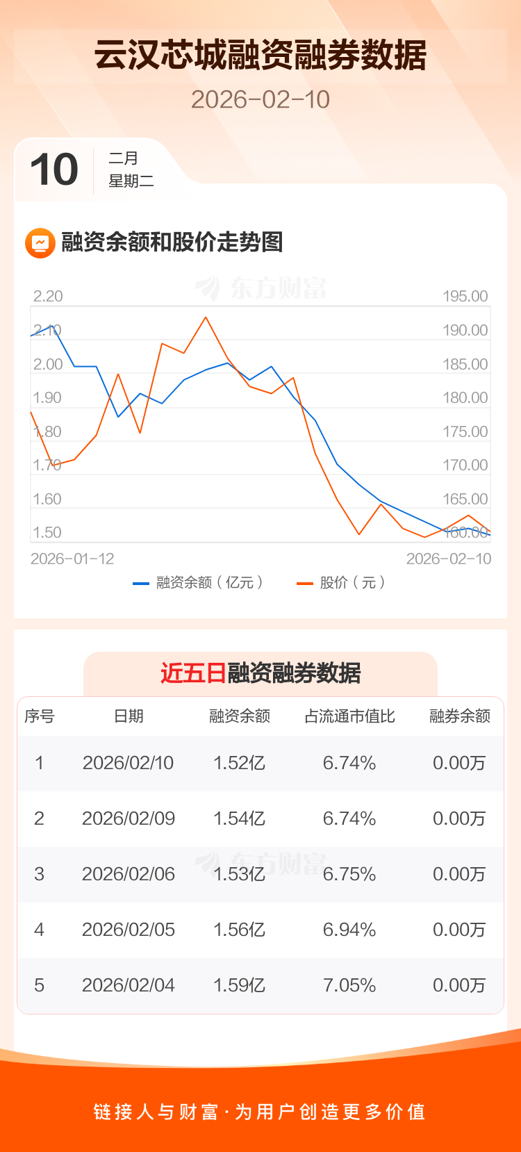 交易所最新数据显示,云汉芯城于2026年2月10日获融资买入667.21万元,融资偿还886.86万元,当日融资净偿还219.65万元。目前,该股融资余额1.52亿,占流通市值比例为6.74%。
