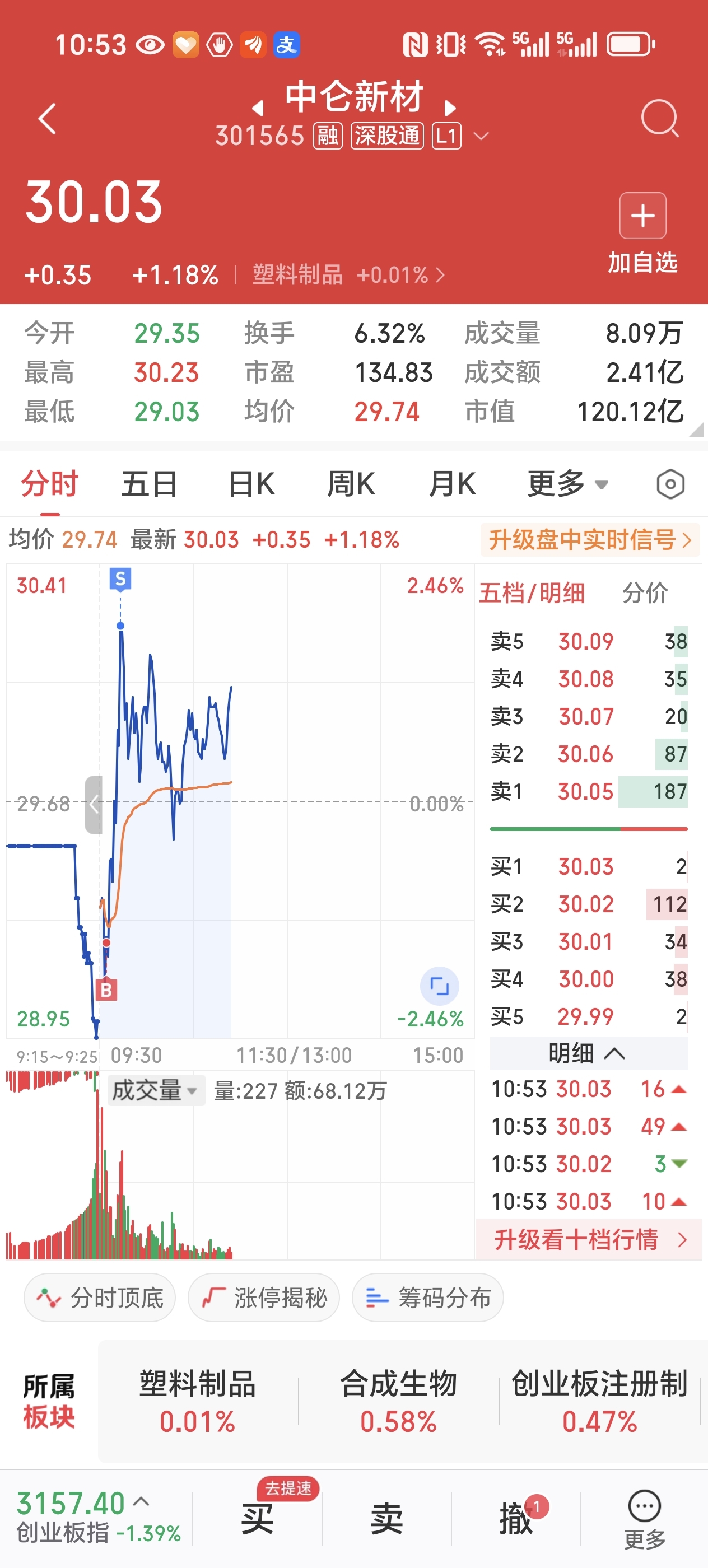 $中仑新材(SZ301565)$ 小平台,继续上冲