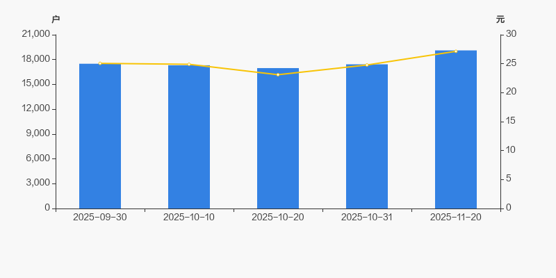 2025年9月30日至今,公司股东户数有所增长,区间涨幅为9.22%。2025年9月30日至2025年11月20日区间股价上涨8.30%。
