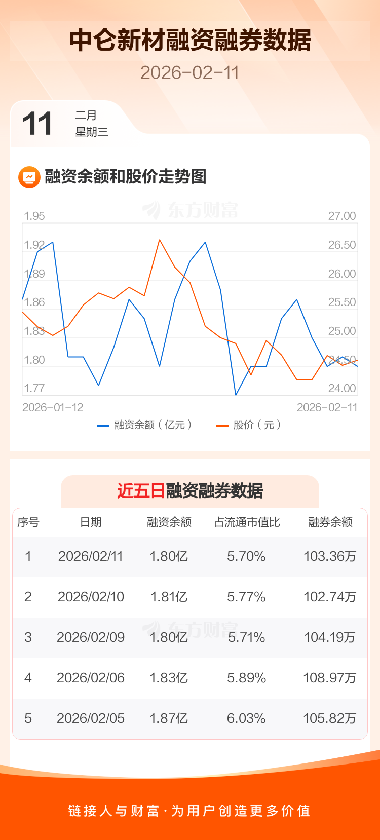 交易所最新数据显示,中仑新材于2026年2月11日获融资买入305.84万元,融资偿还457.29万元,当日融资净偿还151.45万元。目前,该股融资余额1.80亿,占流通市值比例为5.70%。
