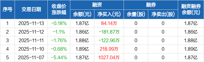 达利凯普:融资净买入84.14万元,融资余额1.87亿元(11-13)