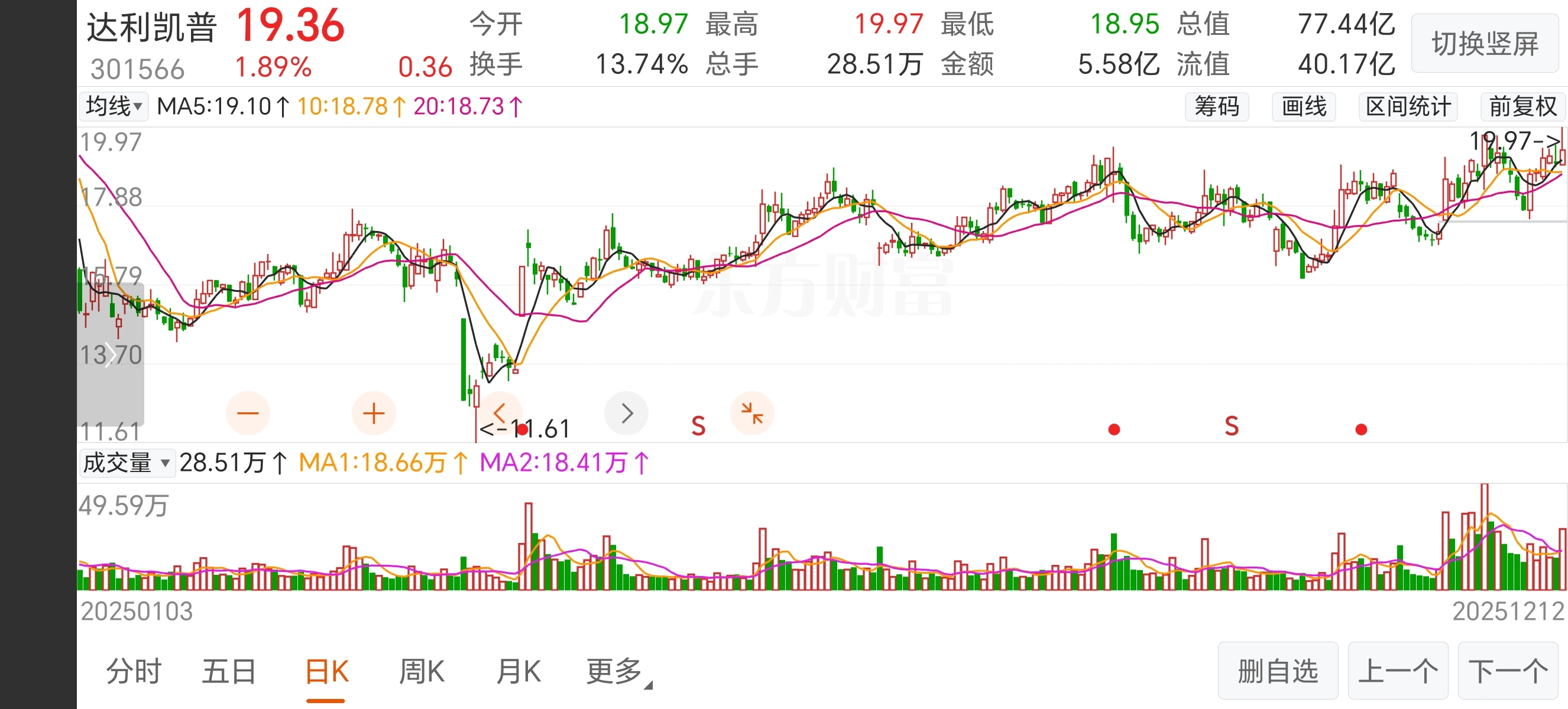 达利凯普上周五的最高点19.97,创了今年新高。难道摸一下最高点,是为了开心开心