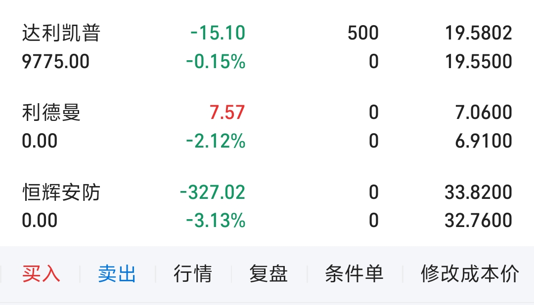 -3.13个点割了恒辉安防,-2割了利德曼,1.45追的达利凯普。