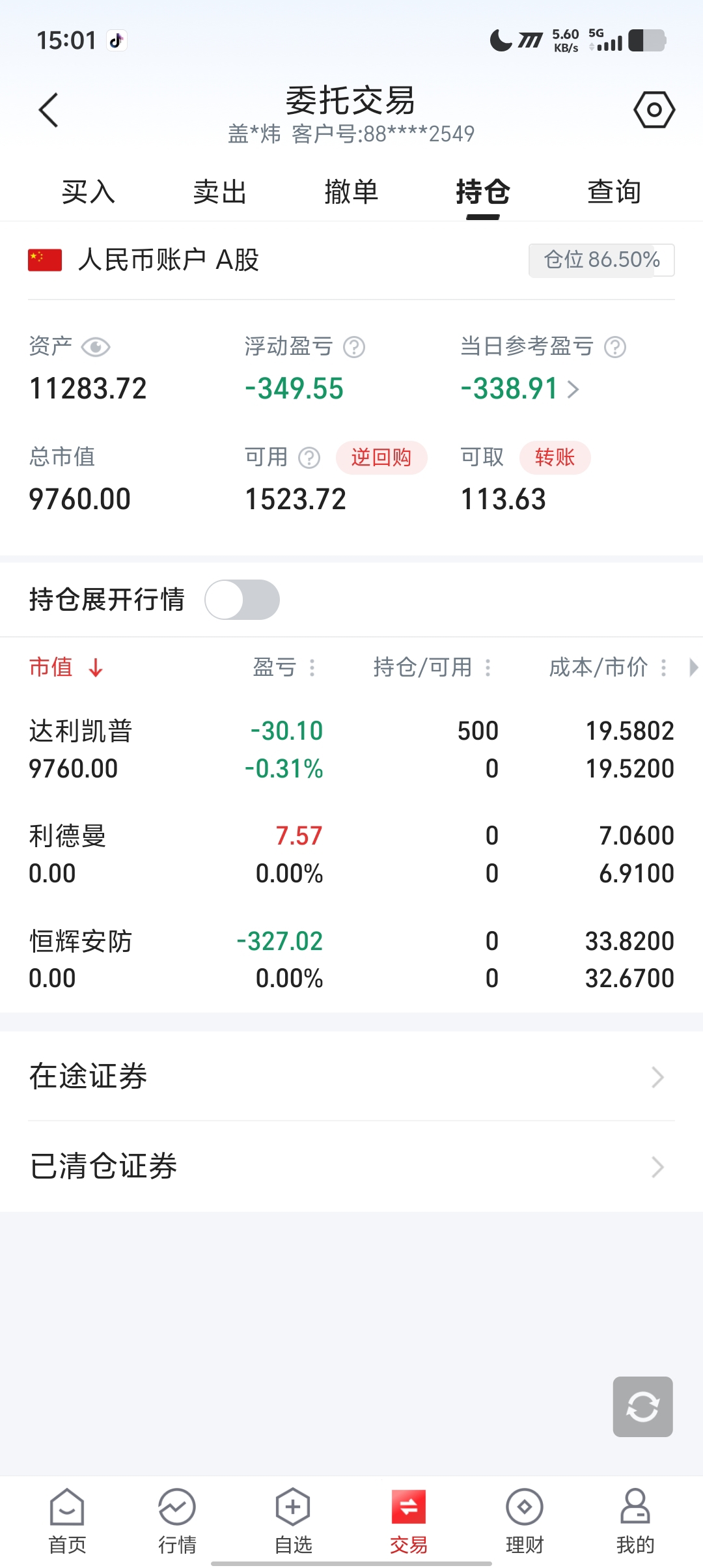 今天在恒辉安防割肉赔的钱,明天我要在达利拿回来!