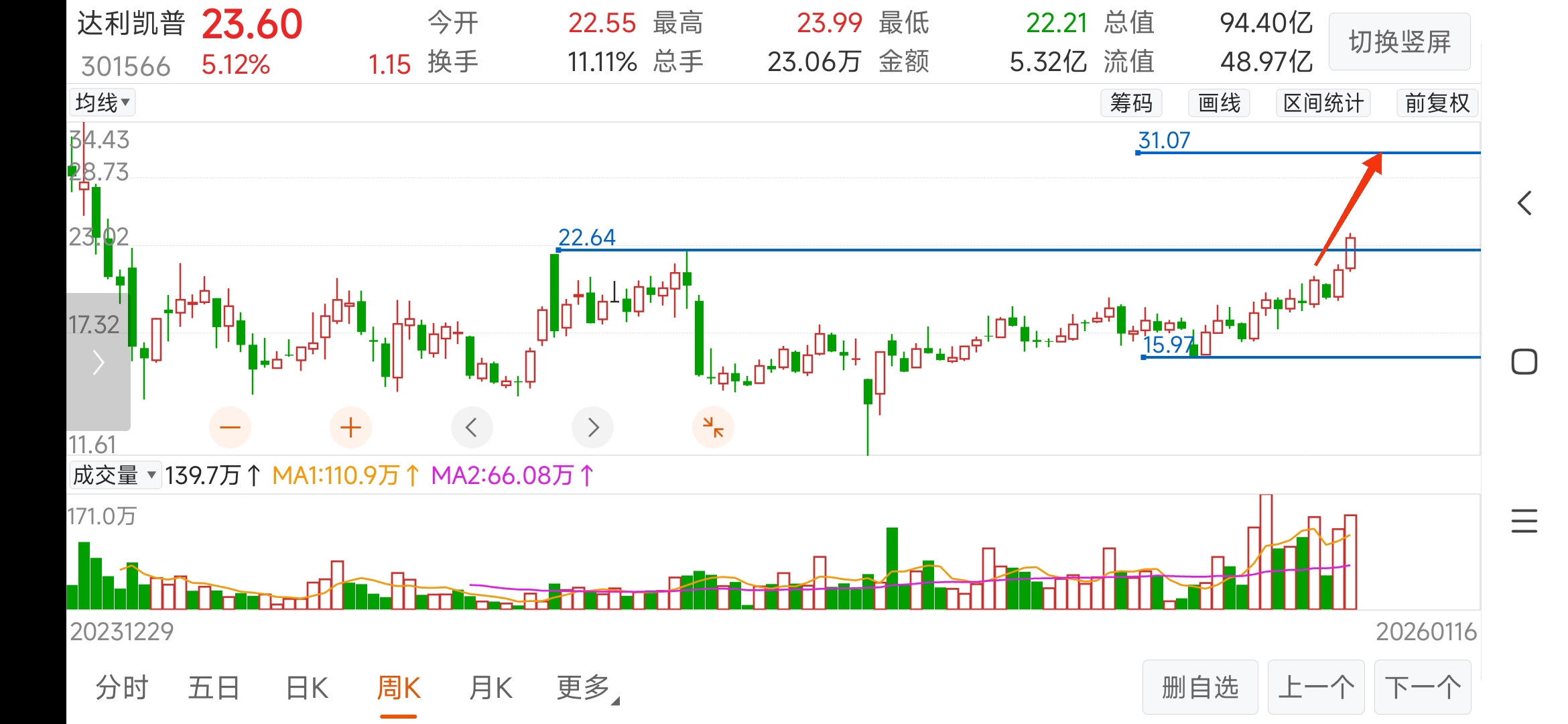 $达利凯普(SZ301566)$ 理论上涨高度,可至箱体上沿。到时你还在吗?