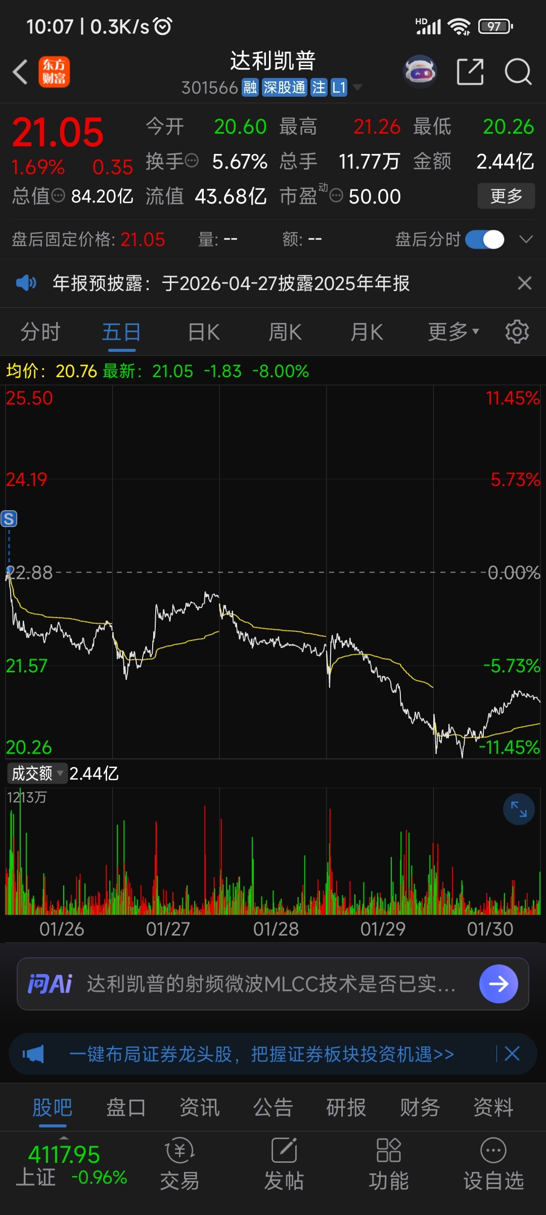 $达利凯普(SZ301566)$ 已经连续空仓5天了,等待最佳买点才是硬道理。