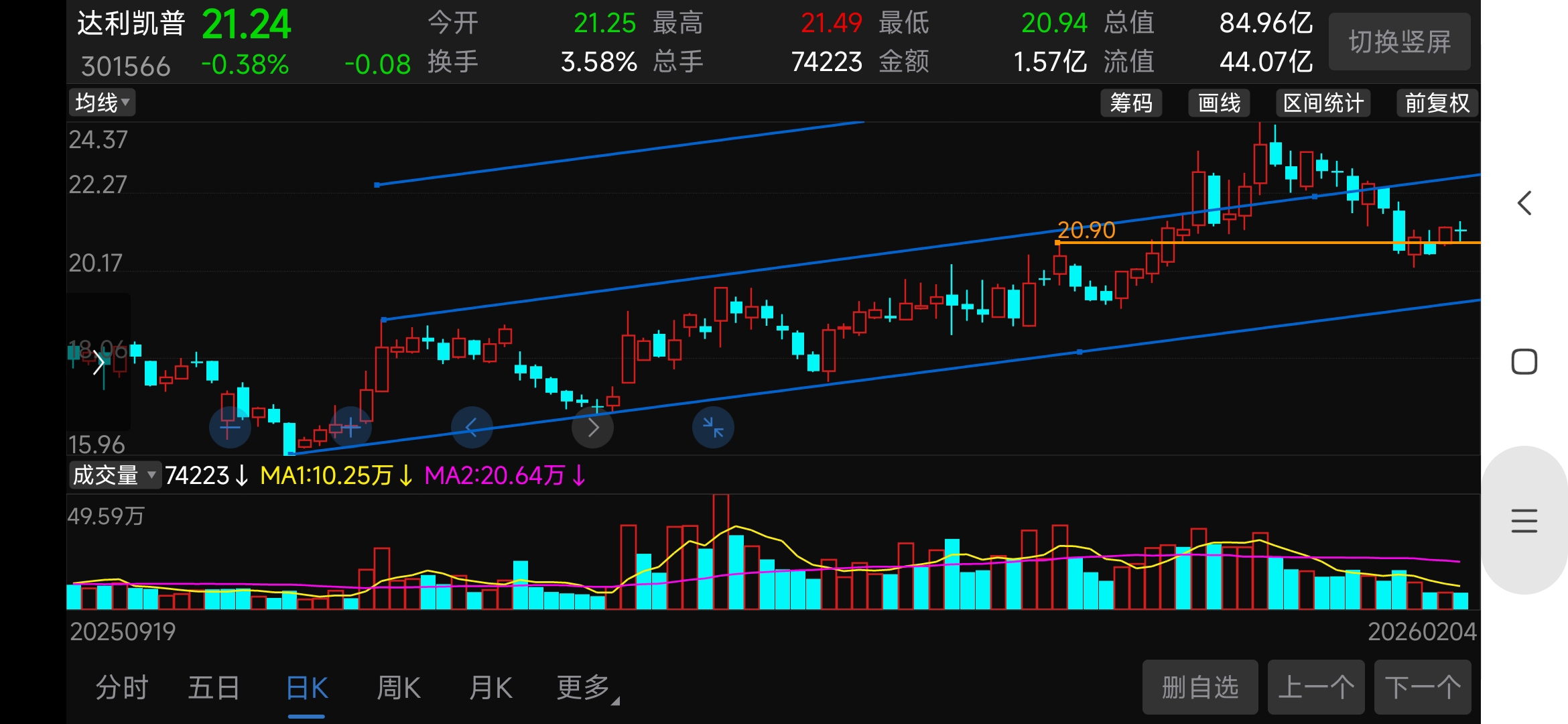 $达利凯普(SZ301566)$ 达利目前缩量,上下二难。短线客至中轨减仓,到下轨加仓。长线散户持股不动如山,以不变应万变。