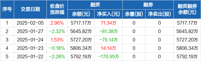 贝隆精密:融资净买入71.34万元,融资余额5717.17万元(02-05)