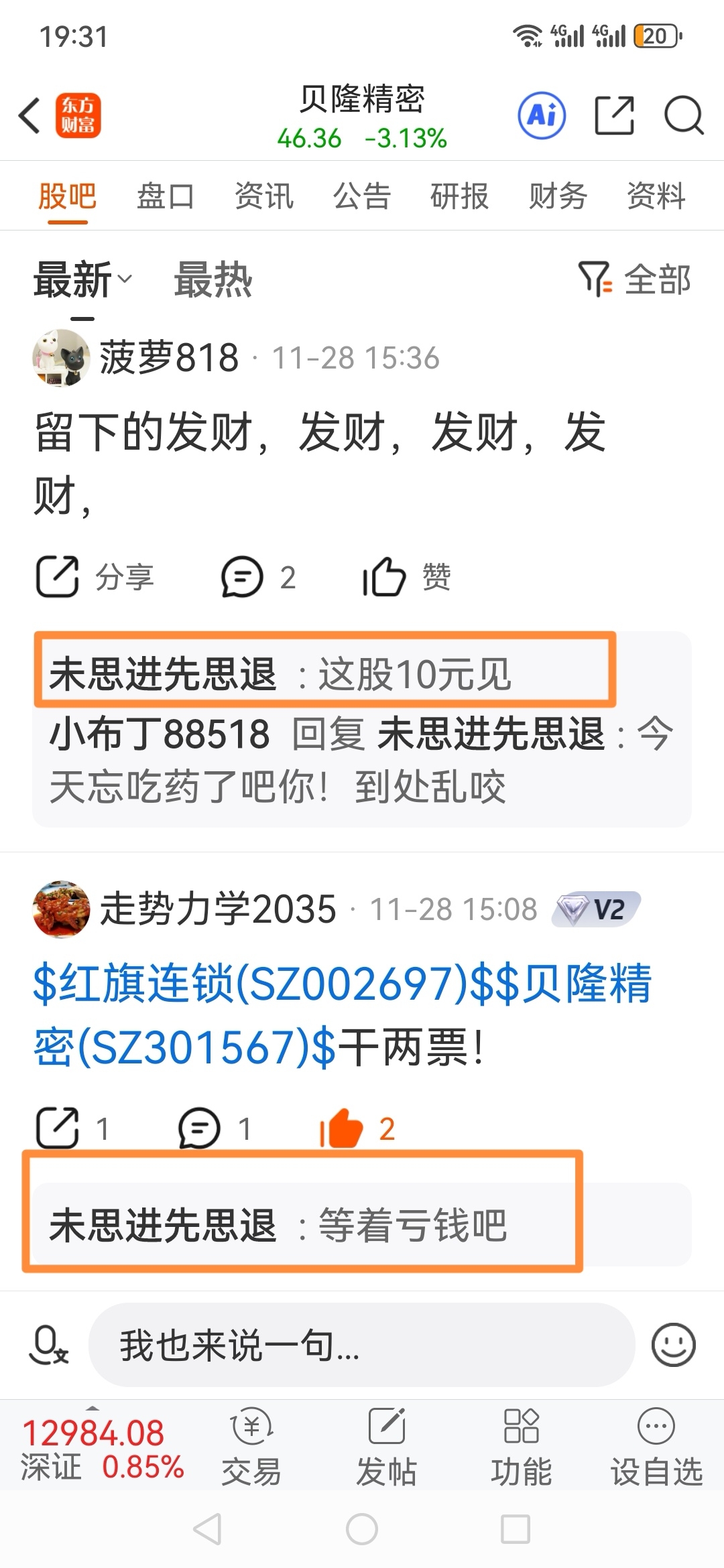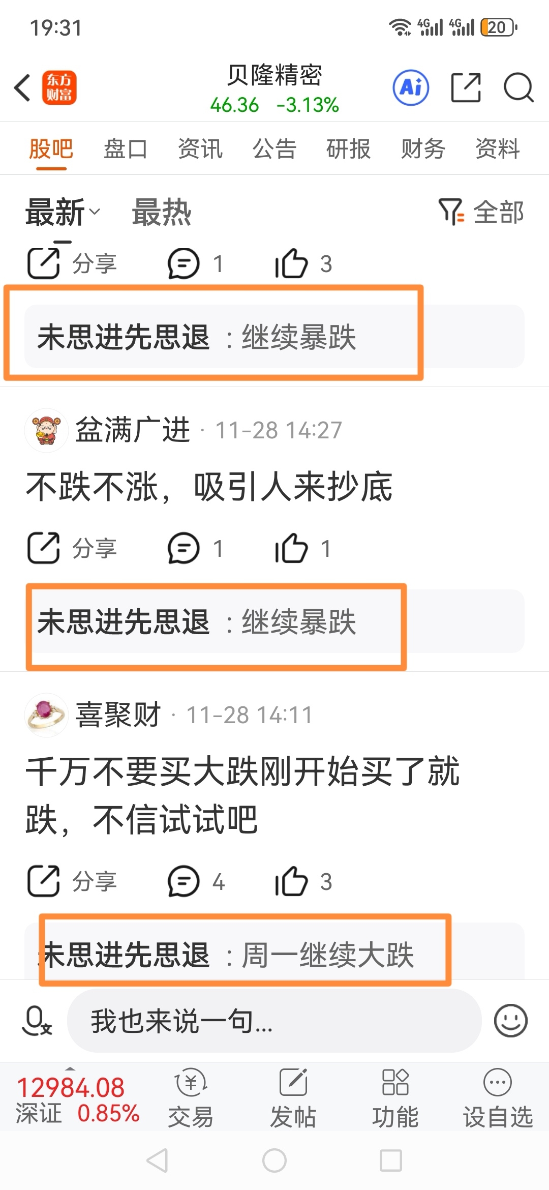 $贝隆精密(SZ301567)$ 大多数要点脸面的人,都会因为自己愚蠢操作割肉亏损而闷不着声,但有一些人反而会大声暴露自己,千辛万苦、千方百计恶意唱空,感觉能凭一嘴操纵市场,是不是好累,好可怜,不知道大家同情这些吗?
