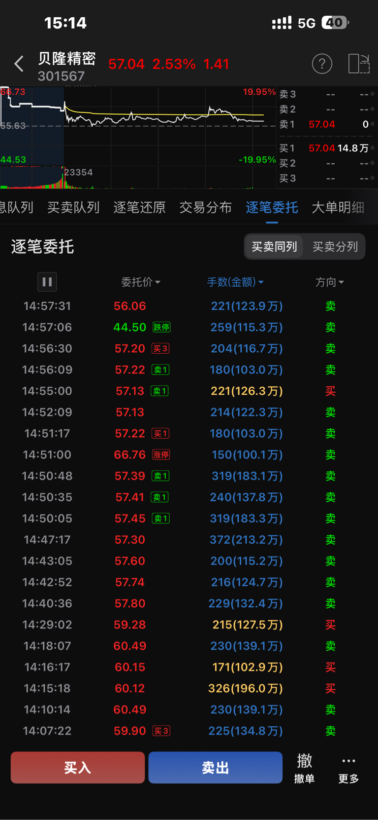 $贝隆精密(SZ301567)$ 尾盘不装了,跌停砸