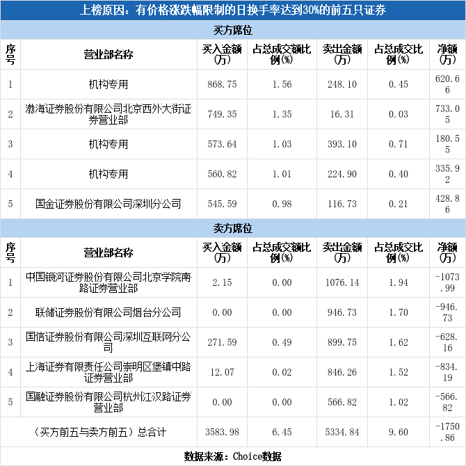 深交所2025年12月3日交易公开信息显示,贝隆精密因属于有价格涨跌幅限制的日换手率达到30%的前五只证券而登上龙虎榜。贝隆精密当日报收54.35元,涨跌幅为-4.72%,换手率48.55%,振幅8.63%,成交额5.56亿元。