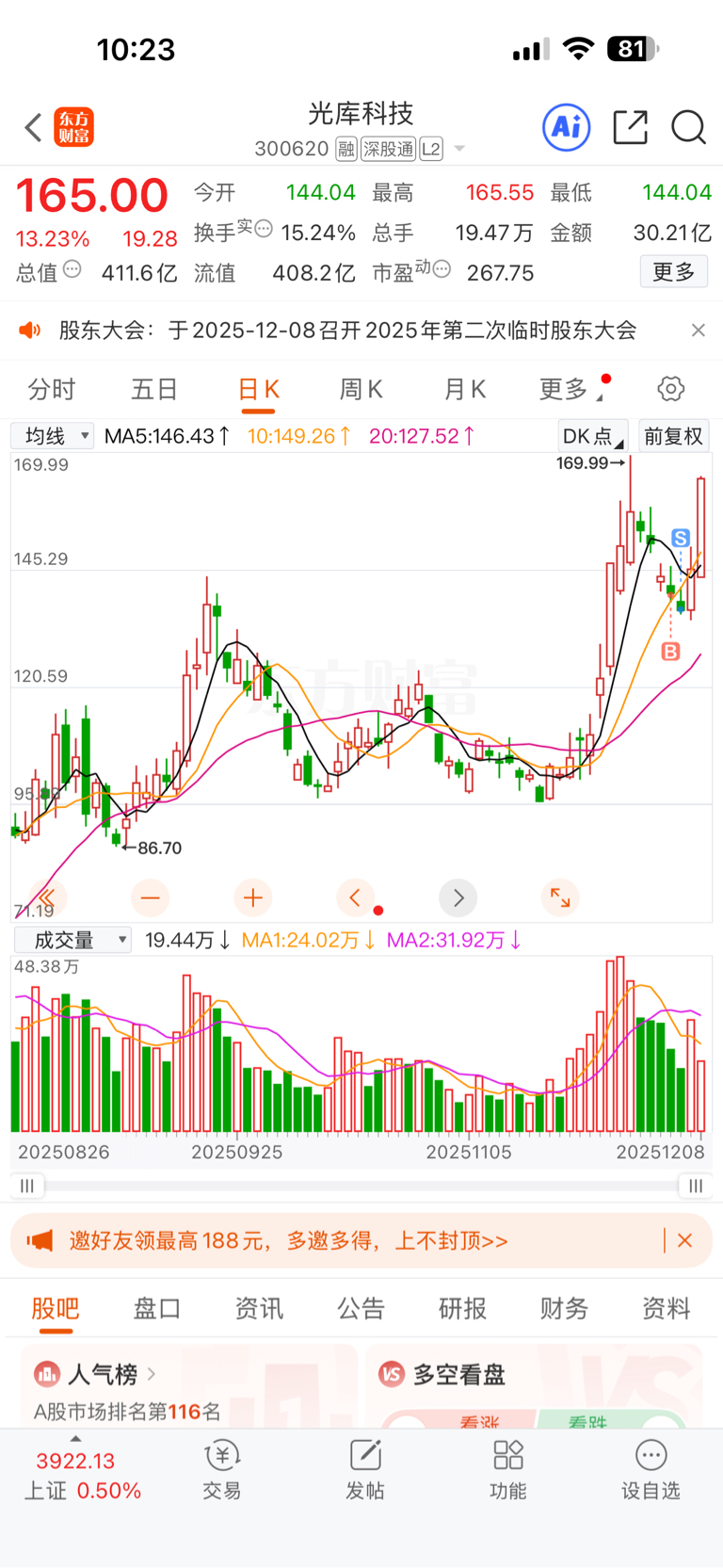 $贝隆精密(SZ301567)$ 卖了光库买了你