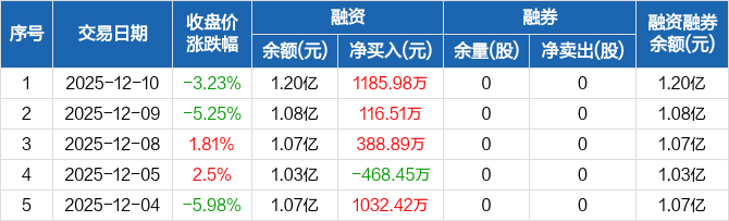 贝隆精密:融资余额1.2亿元,创历史新高(12-10)