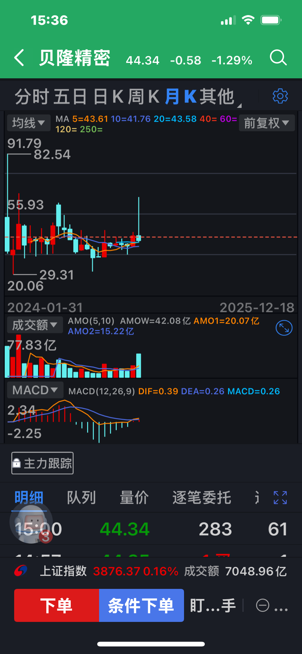 不见月线大下影线不进场空仓观望管住手,底部34元左右再买入