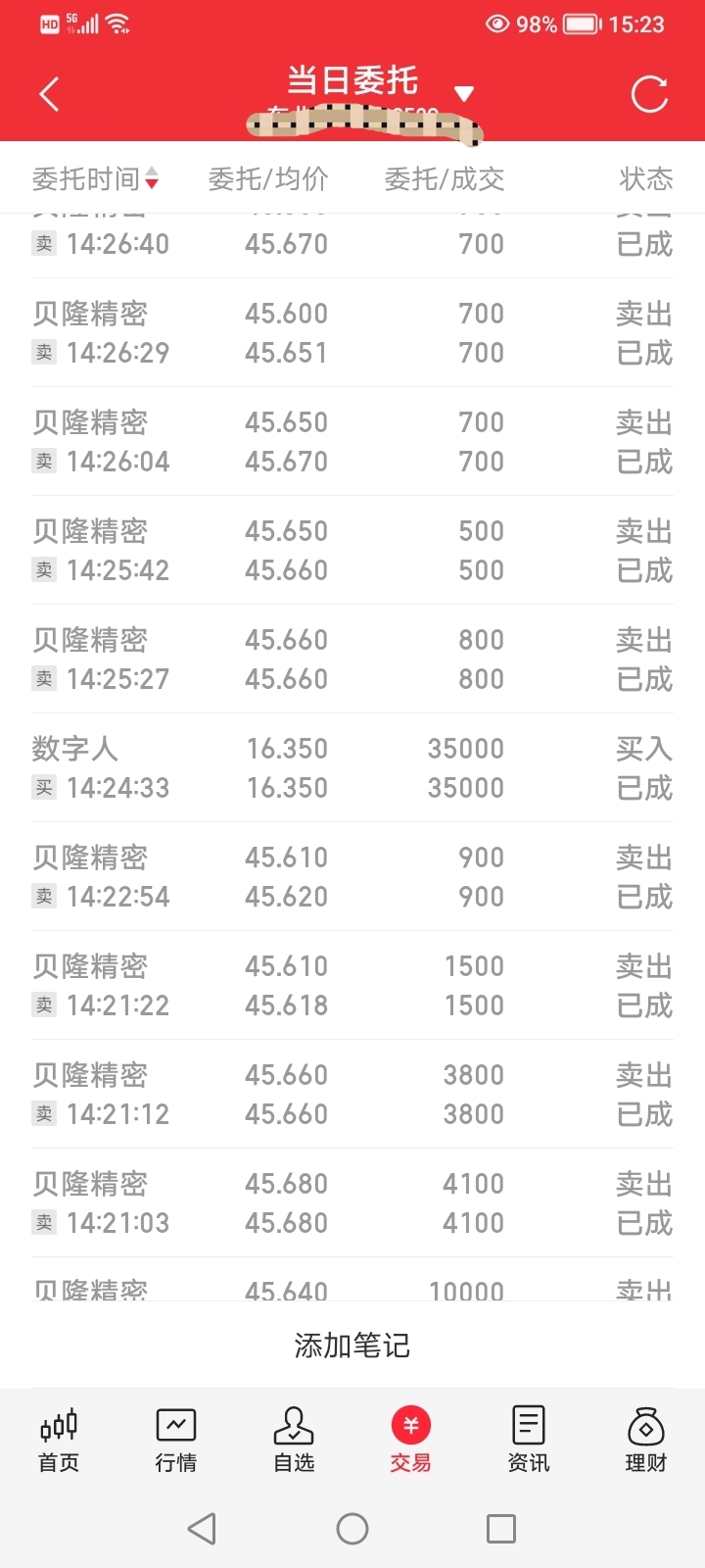 $贝隆精密(SZ301567)$ 反弹就要出局,30天线46.87元压力这么大,大盘这么好都不去触碰下,果断出局,卖了,:不玩了。留下来好运。至少没有这么快起来。一路跌下来,套住人太多。都想等反弹出局。