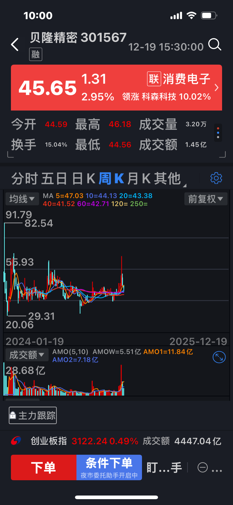 我是中签了500股两年来一直关注贝隆精密已经三次到了60元以上就是最高点然后快速
