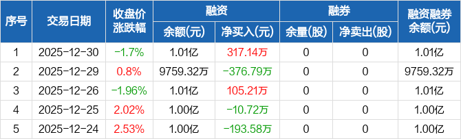 贝隆精密:融资净买入317.14万元,融资余额1.01亿元(12-30)