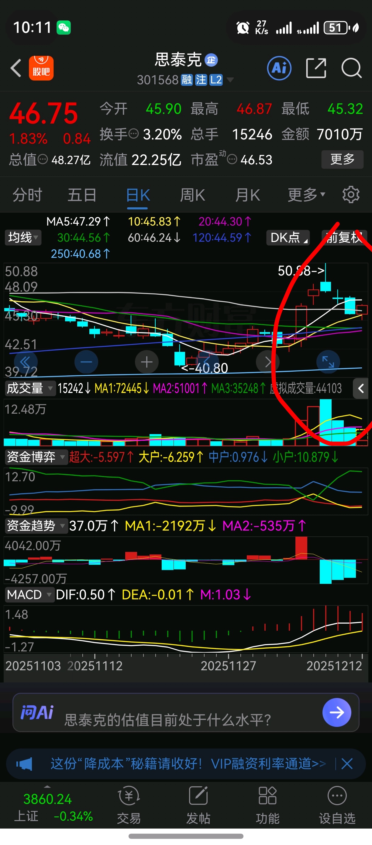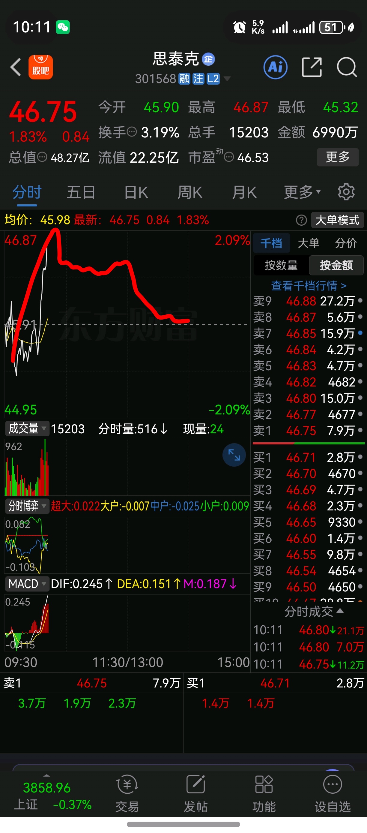 $思泰克(SZ301568)$ 这票就是个跟风也算不上的纯后排,现在的阶段就是辨识度抱团,只有那些热门股,高辨识度的票,才能有大资金愿意去接力,这种无人关注的票,只会在龙头涨十几个点后冲高两三个点,然后再回落到原点,就是以套人为主。没任何操作价值。