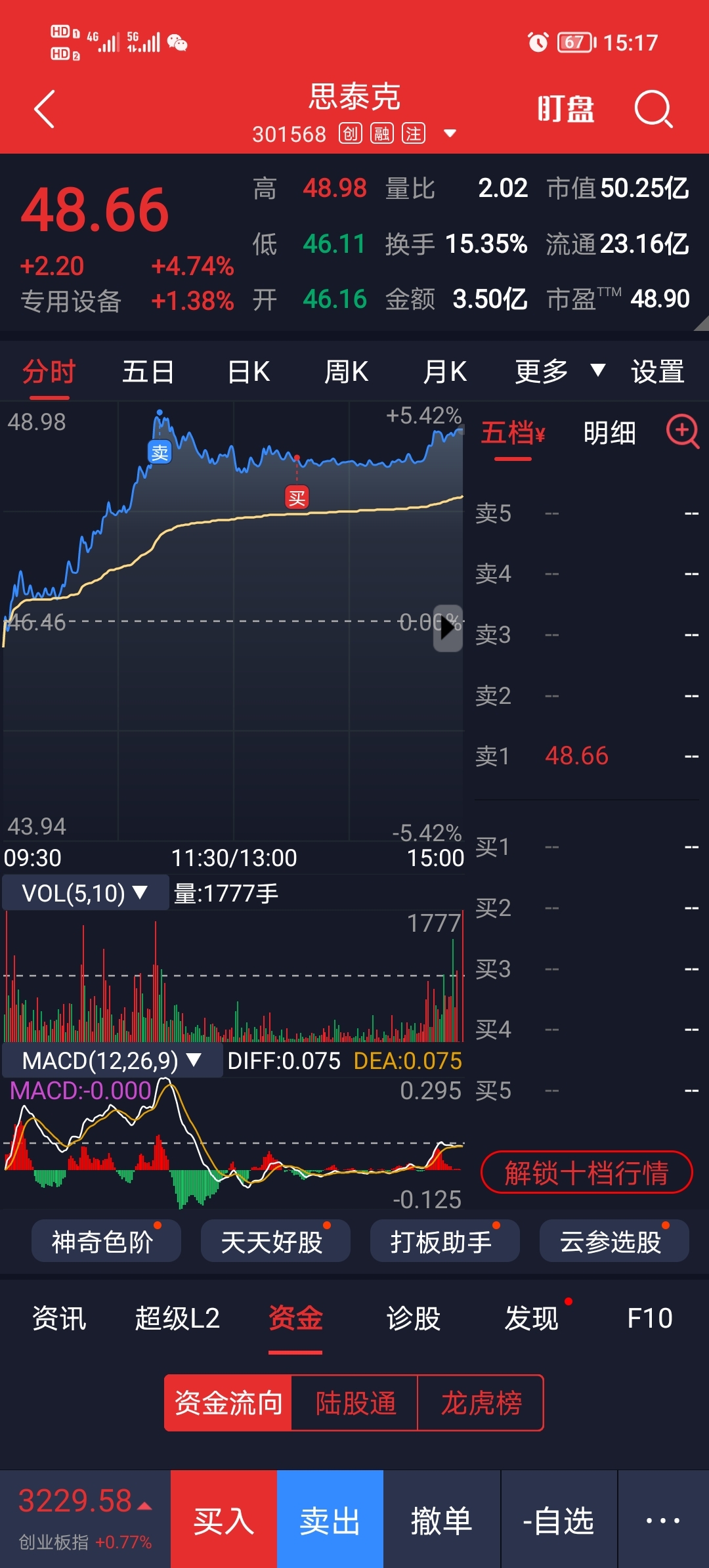 $思泰克(SZ301568)$ 明天破50.88。扶好坐稳。今天48.88做个差价,差点做丢了