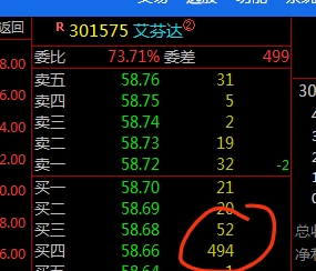 $艾芬达(SZ301575)$ 盘中总有三四百手在下面托着,且不撤单,应该是深股通外资吃货建仓