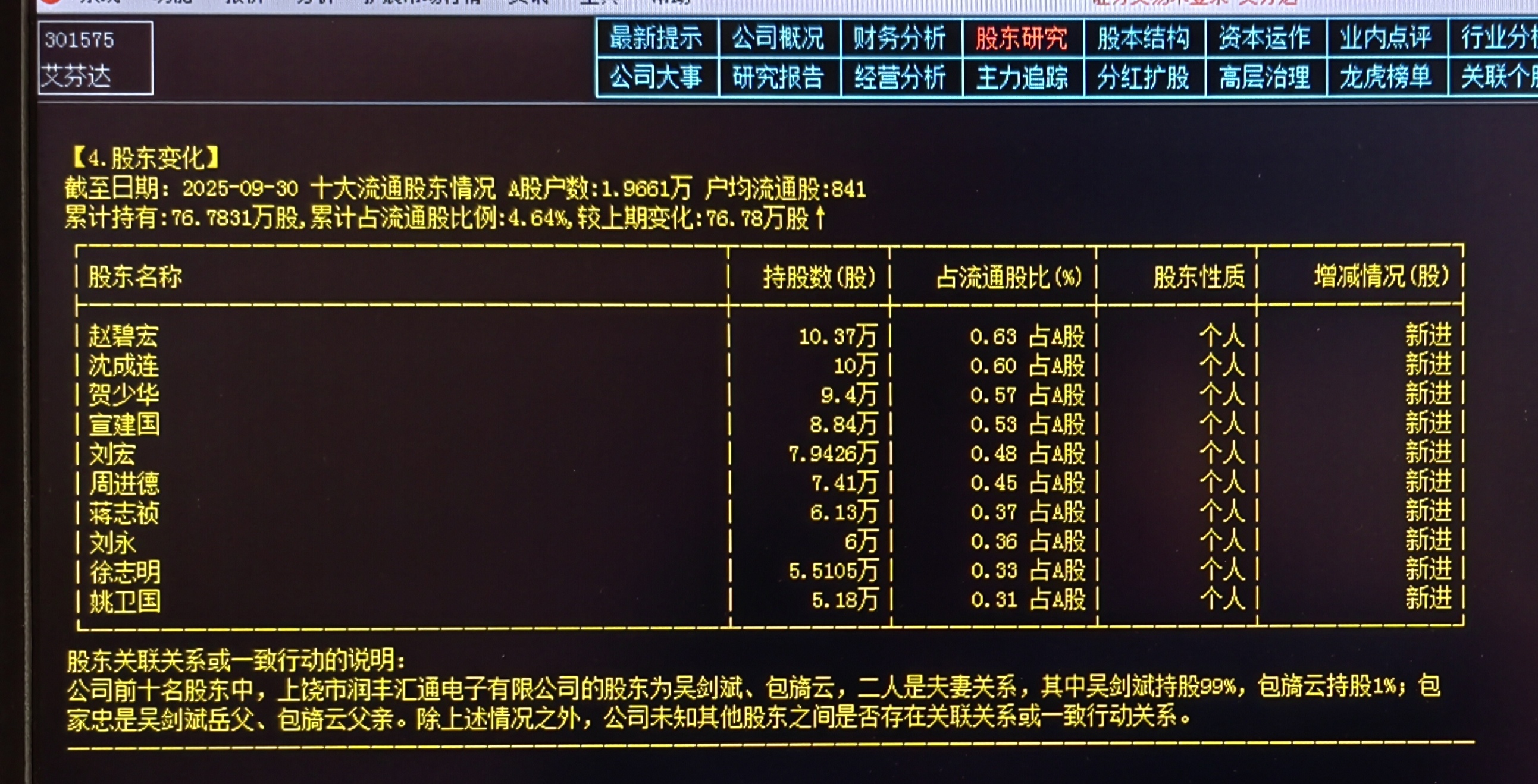 【破发】——艾芬达,其截至日期:2025-09-30的十大流通股东,全是“大户”