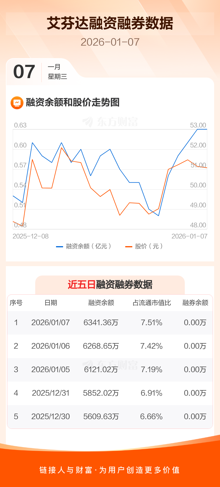 交易所最新数据显示,艾芬达于2026年1月7日获融资买入500.93万元,融资偿还428.22万元,当日融资净买入72.71万元。目前,该股融资余额6341.36万,占流通市值比例为7.51%。