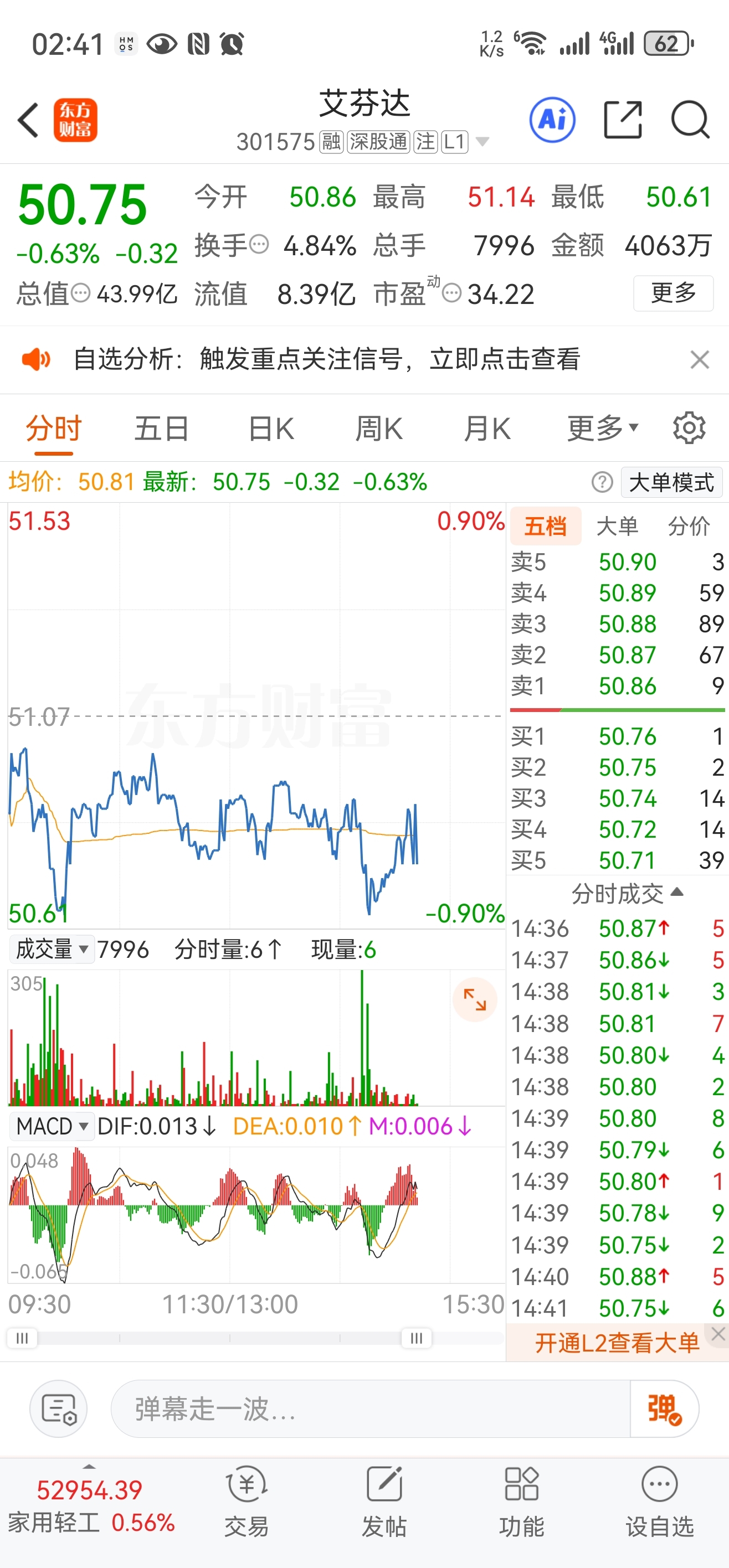 $艾芬达(SZ301575)$ 流动性枯竭