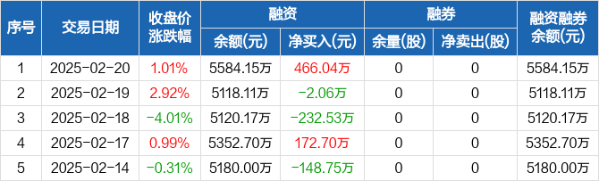 美信科技:融资净买入466.04万元,融资余额5584.15万元(02-20)