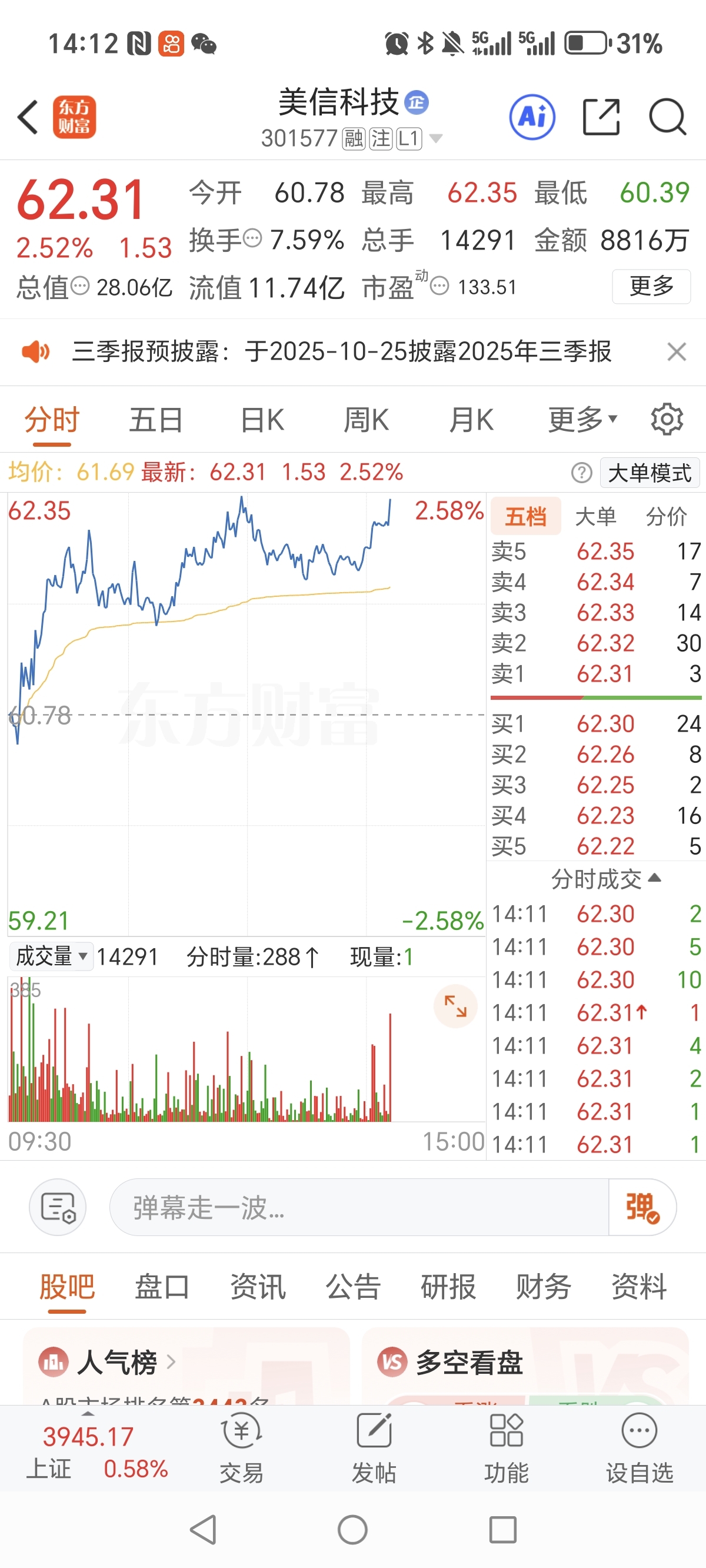 $美信科技(SZ301577)$ 这种分时线上移不是吸筹是什么呢