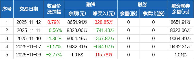 美信科技:融资净买入328.85万元,融资余额8651.91万元(11-12)