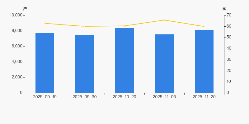 2025年9月19日至今,公司股东户数有所增长,区间涨幅为5.05%。2025年9月19日至2025年11月20日区间股价下降4.53%。