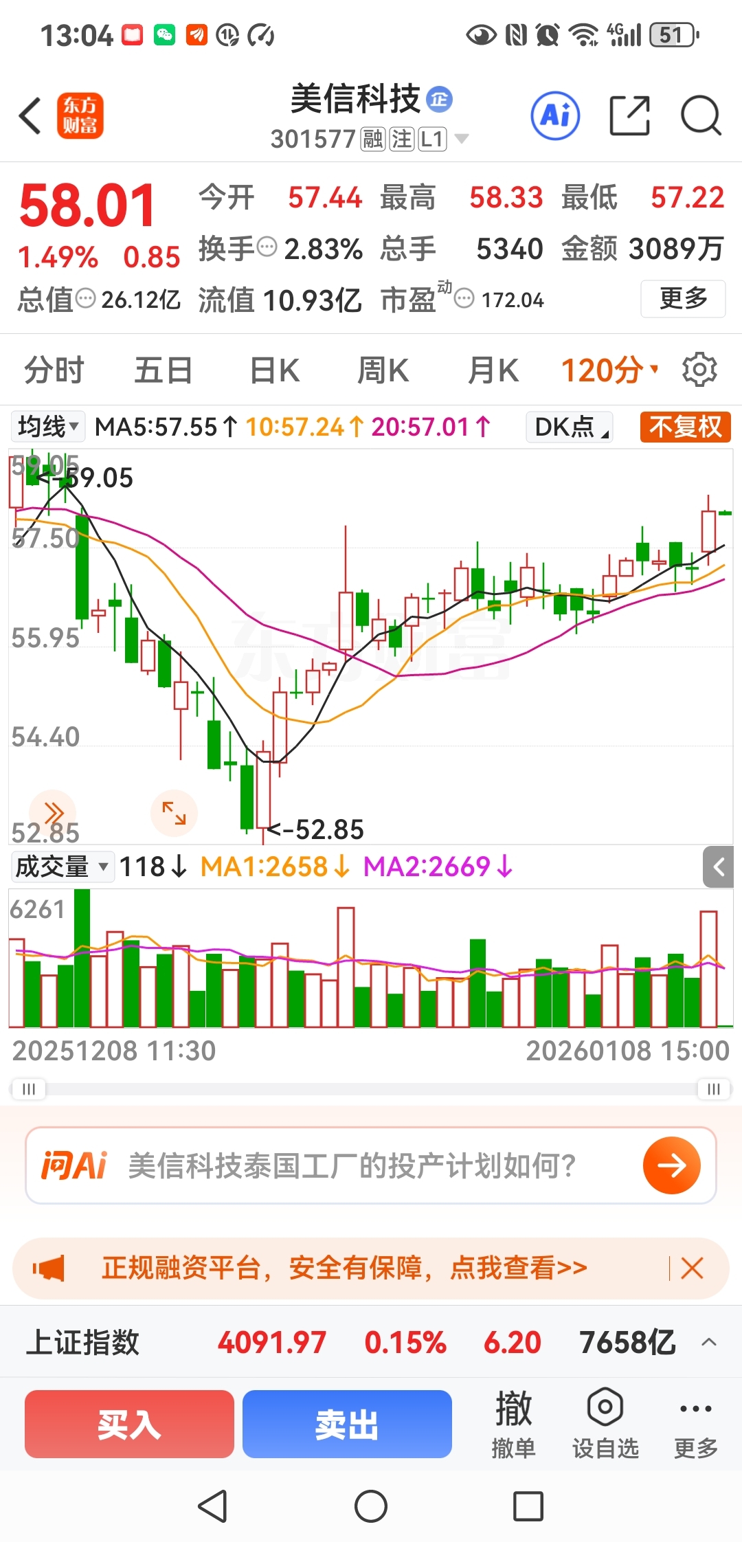 $美信科技(SZ301577)$ 来了,先碰.黑线,必碰黑线股,先5毛差价。57.5来吧,大哥大。