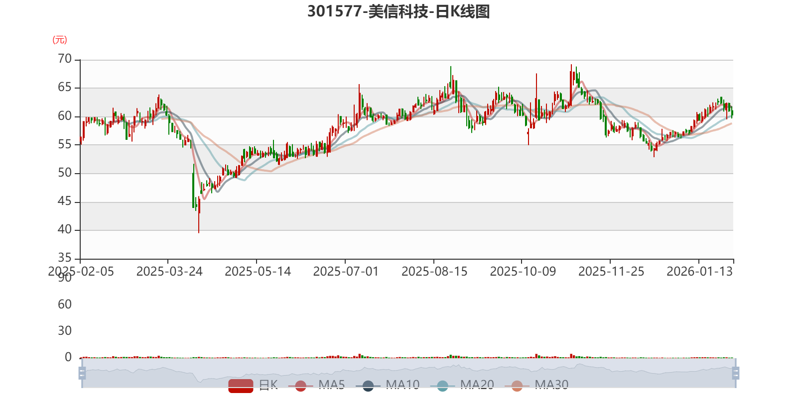 中证智能财讯美信科技(301577)1月29日晚间披露2025年度业绩预告,预计2025年归母净利润亏损335万元至600万元,上年同期盈利3226.71万元;扣非净利润亏损390万元至700万元,上年同期盈利3014.02万元。以最新收盘价计算,市净率(LF)约3.56倍,市销率(TTM)约6.29倍。