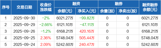 辰奕智能:融资净偿还99.82万元,融资余额6021.27万元(09-30)