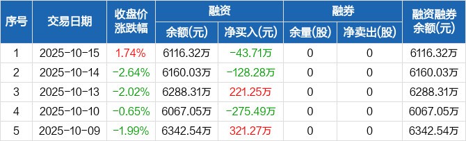 辰奕智能:融资净偿还43.71万元,融资余额6116.32万元(10-15)