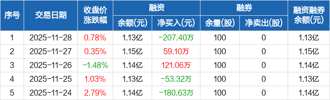 爱迪特:融资净偿还207.4万元,融资余额1.13亿元(11-28)