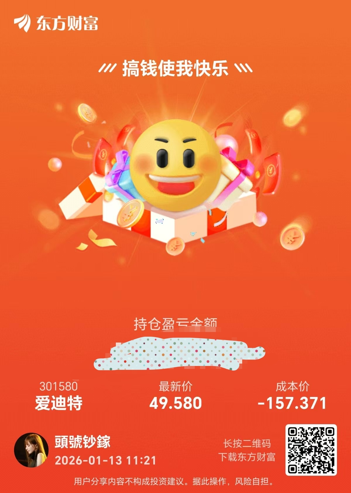温馨提示: 1.根据《证券法》规定,禁止编造、传播虚假信息或者误导性信息,扰乱证券市场;2.用户在本社区发表的所有资料、言论等仅代表个人观点,与本网站立场无关,不对您构成任何投资建议。用户应基于自己的独立判断,自行决定证券投资并承担相应风险。《东方财富社区管理规定》