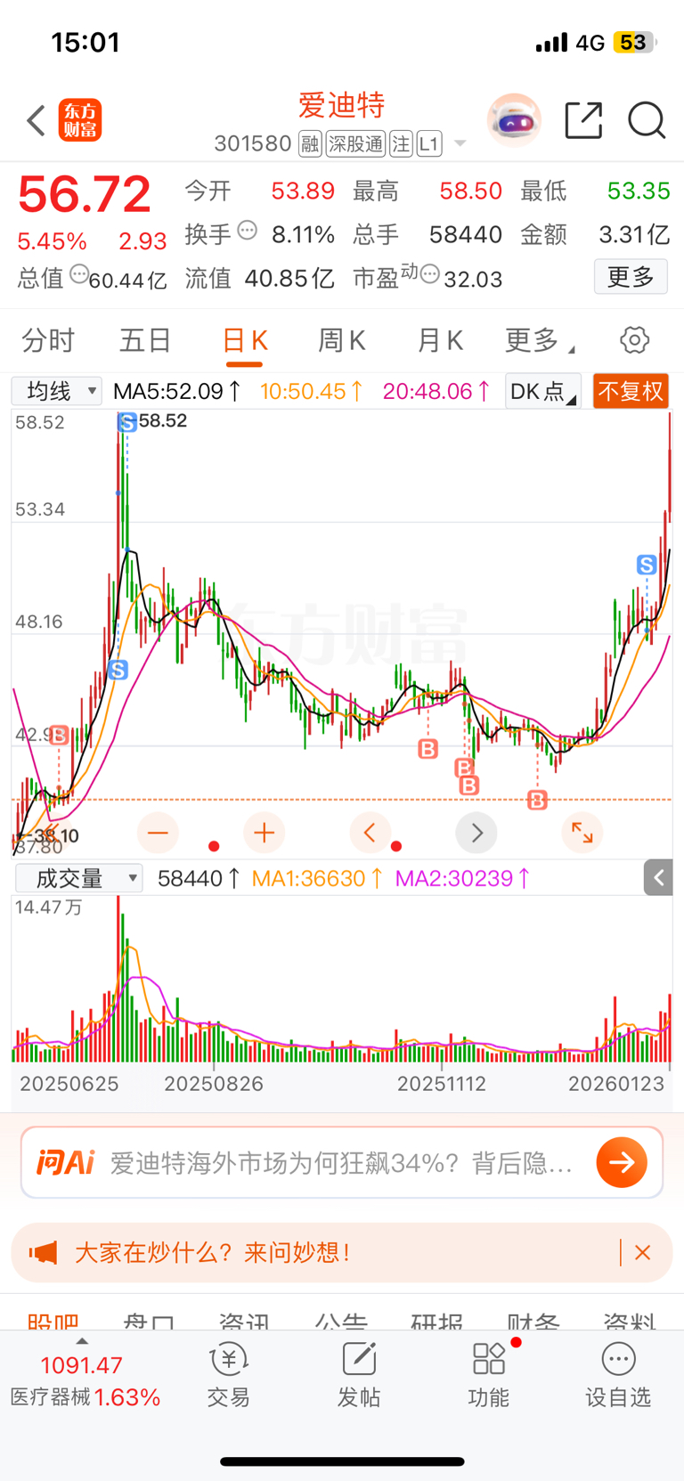 爱迪特是好股,,一天到晚有人在ggyy看空,今年做了两次波段,累积赢利90%! 第一次6月份持有到7月,这一波11月份陆续进,减持公告当天49.2出了25%!还剩75%,阿里的成本都57了,怕什么!耐心持有!42一58是个好区间#炒股日记# #实盘记录#