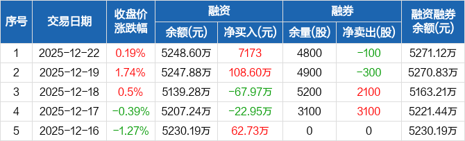 黄山谷捷:融资净买入7173元,融资余额5248.6万元(12-22)