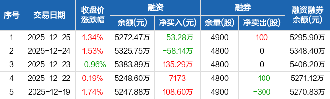 黄山谷捷:融资净偿还53.28万元,融资余额5272.47万元(12-25)