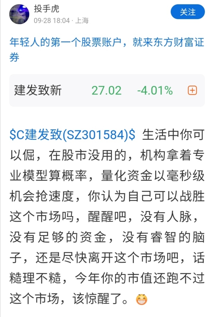 温馨提示: 1.根据《证券法》规定,禁止编造、传播虚假信息或者误导性信息,扰乱证券市场;2.用户在本社区发表的所有资料、言论等仅代表个人观点,与本网站立场无关,不对您构成任何投资建议。用户应基于自己的独立判断,自行决定证券投资并承担相应风险。《东方财富社区管理规定》