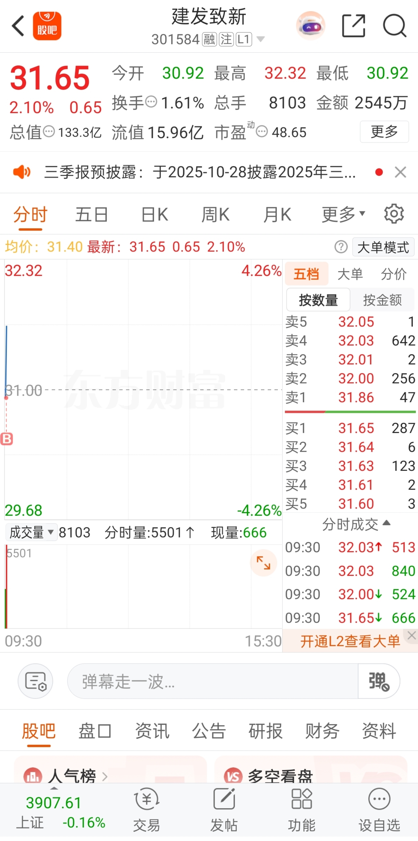今日早盘选择介入个股$建发致新(SZ301584)$