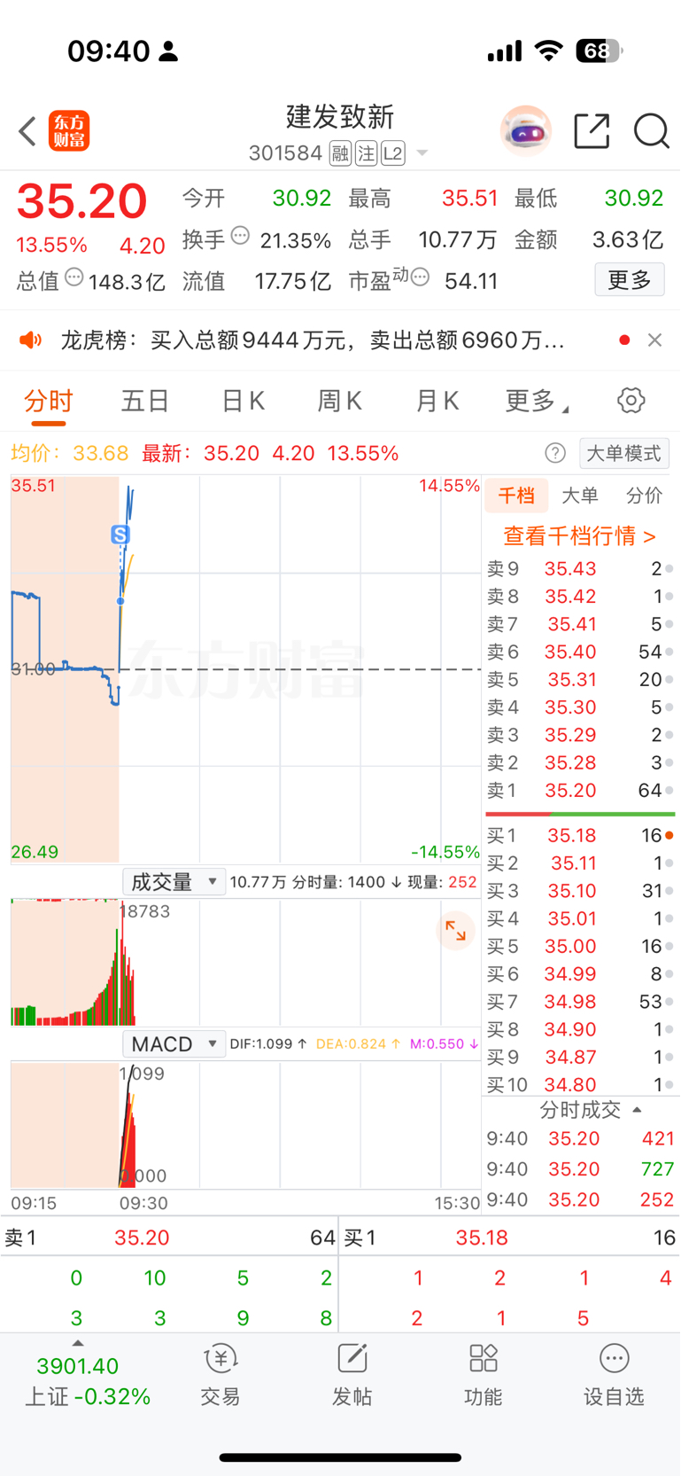 $建发致新(SZ301584)$ 9.20挂的成本价不赔钱,我在4个点的时候撤单,结果直接成交了