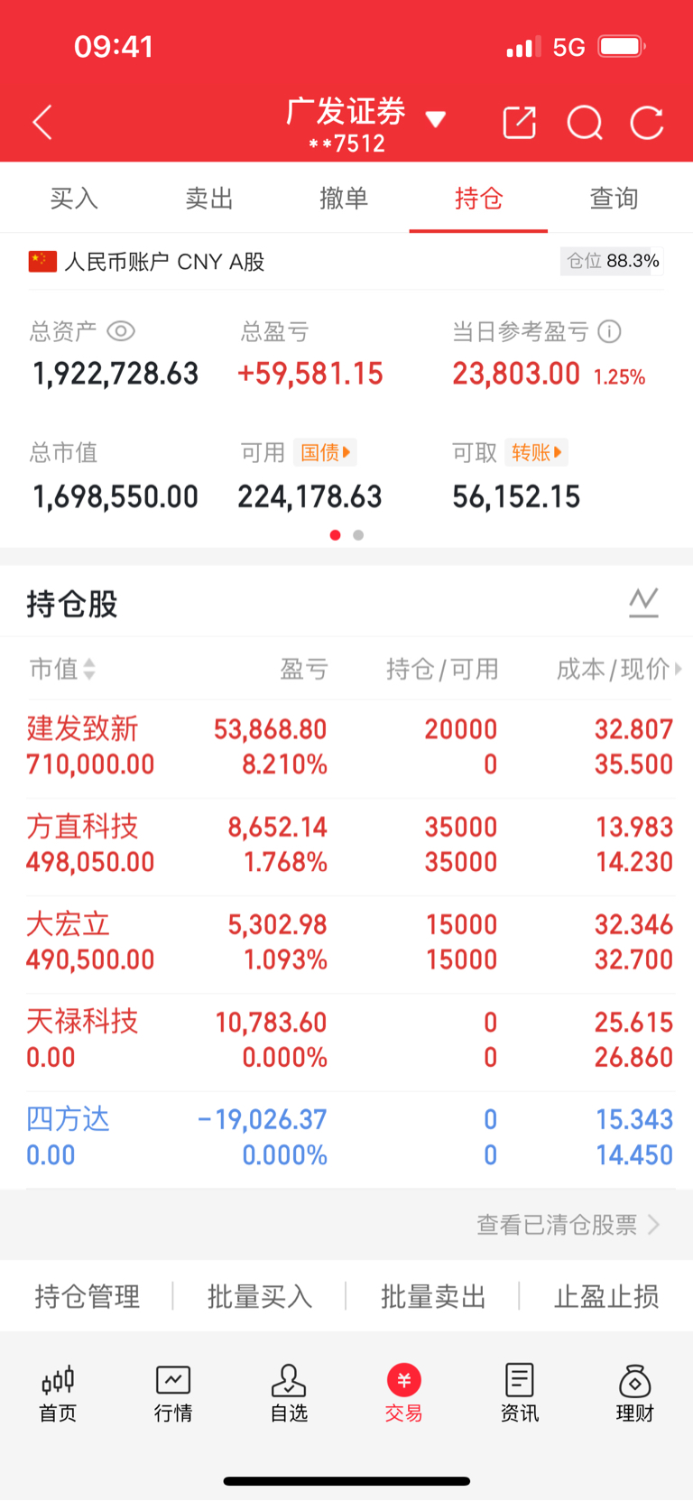 李成炒股三个月挑战收益翻倍第8天今日实盘操作明细:买入:建发致新卖出:四方达天禄