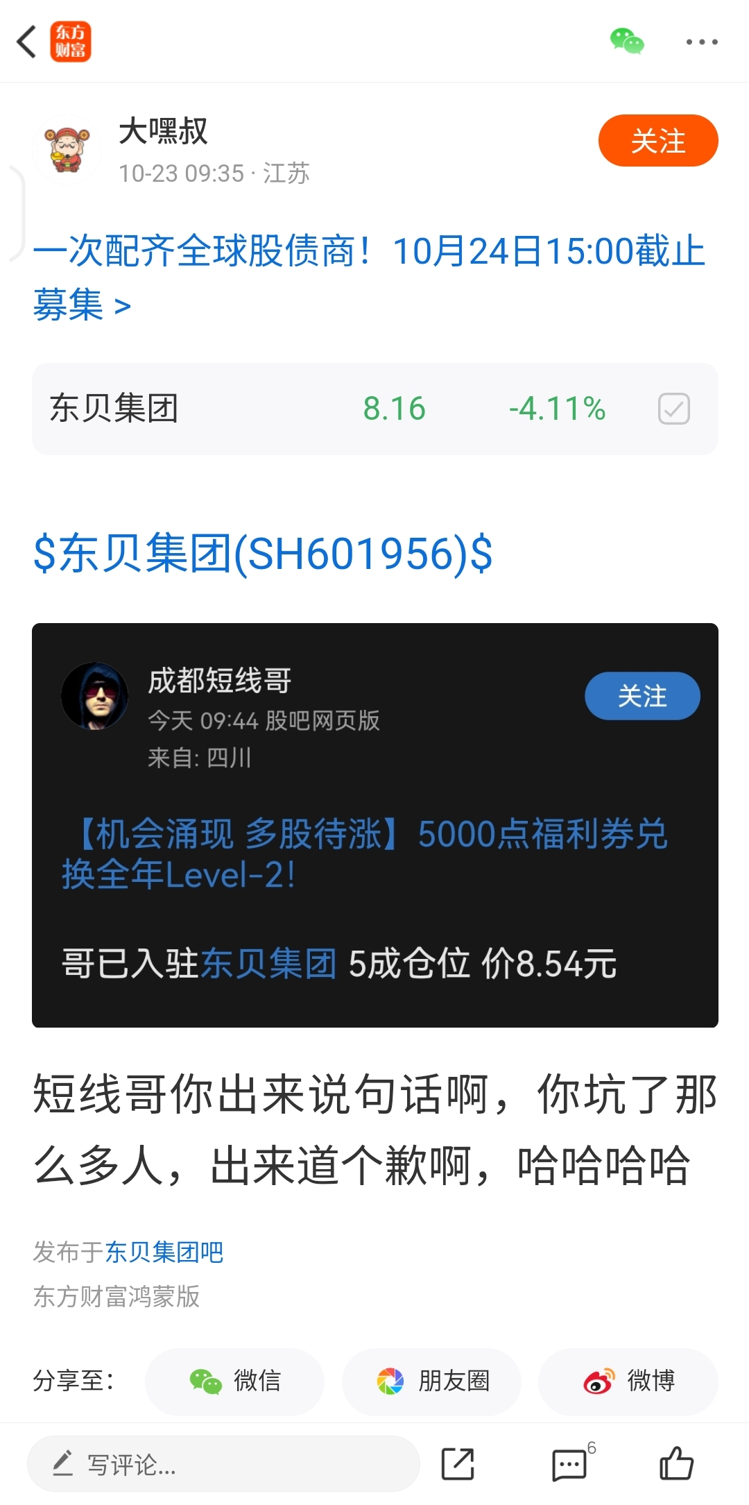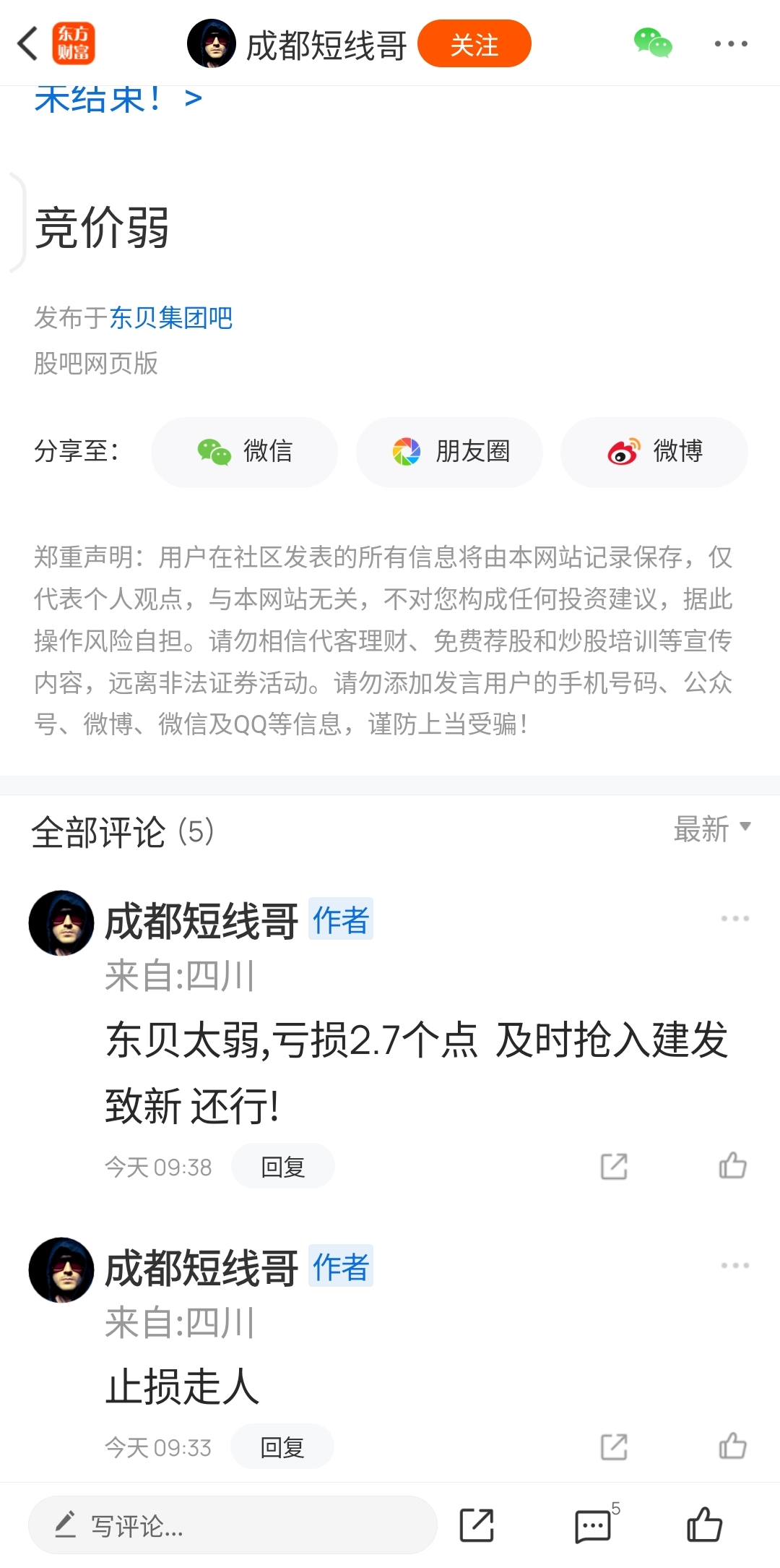 温馨提示: 1.根据《证券法》规定,禁止编造、传播虚假信息或者误导性信息,扰乱证券市场;2.用户在本社区发表的所有资料、言论等仅代表个人观点,与本网站立场无关,不对您构成任何投资建议。用户应基于自己的独立判断,自行决定证券投资并承担相应风险。《东方财富社区管理规定》