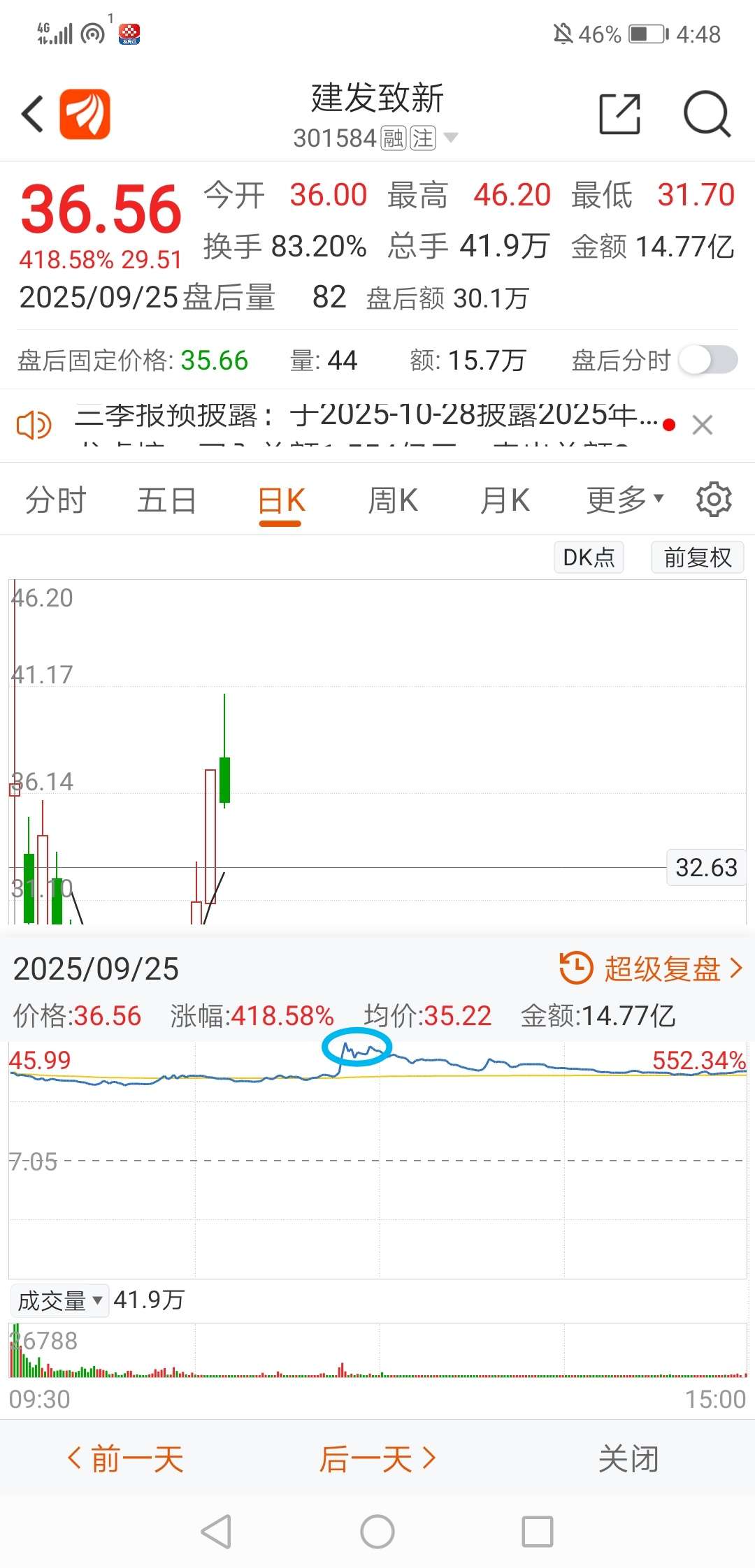 今天最高点40.80元,差不多解套了95%的筹码,只有那一块蓝色圈圈没解套。今天