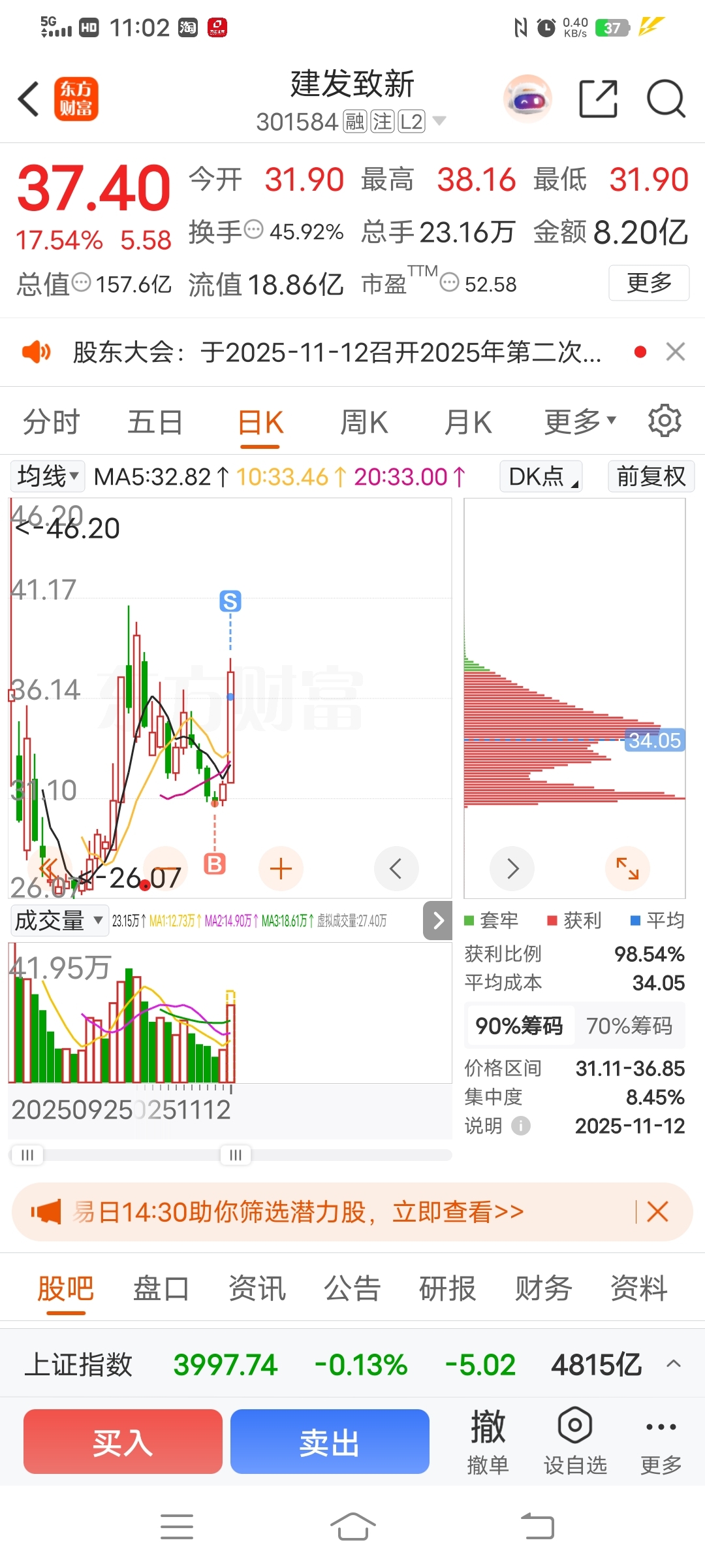 $建发致新(SZ301584)$ 投机一把