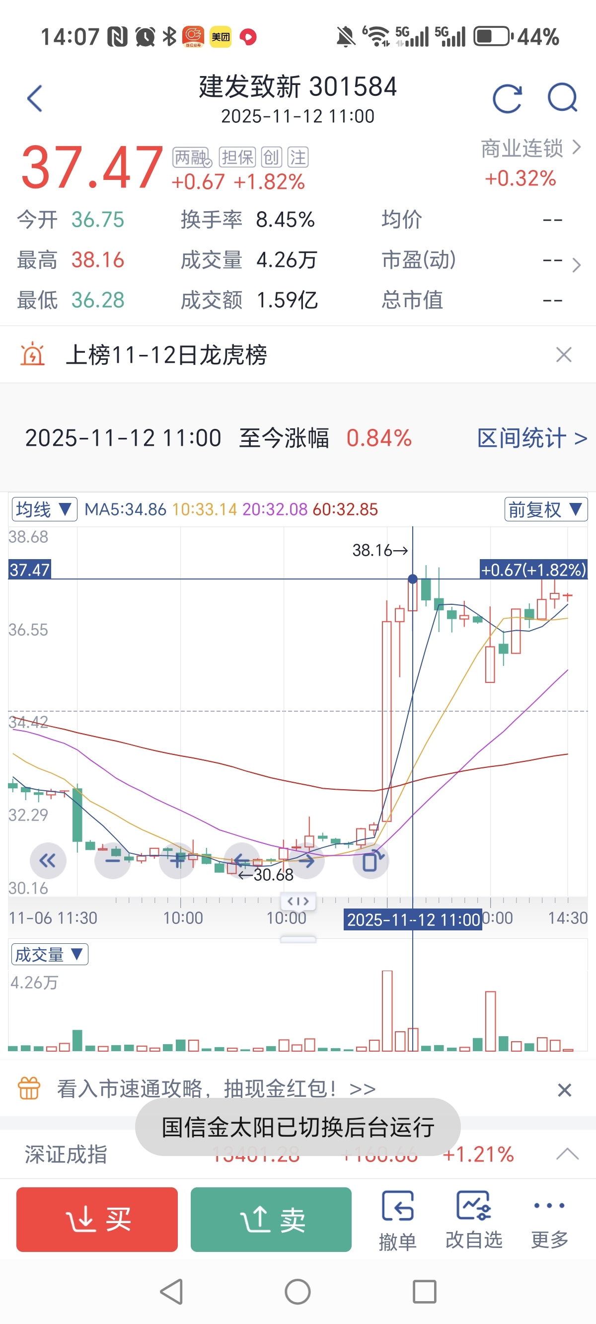 $建发致新(SZ301584)$ 37.47这个位置有那么难过吗